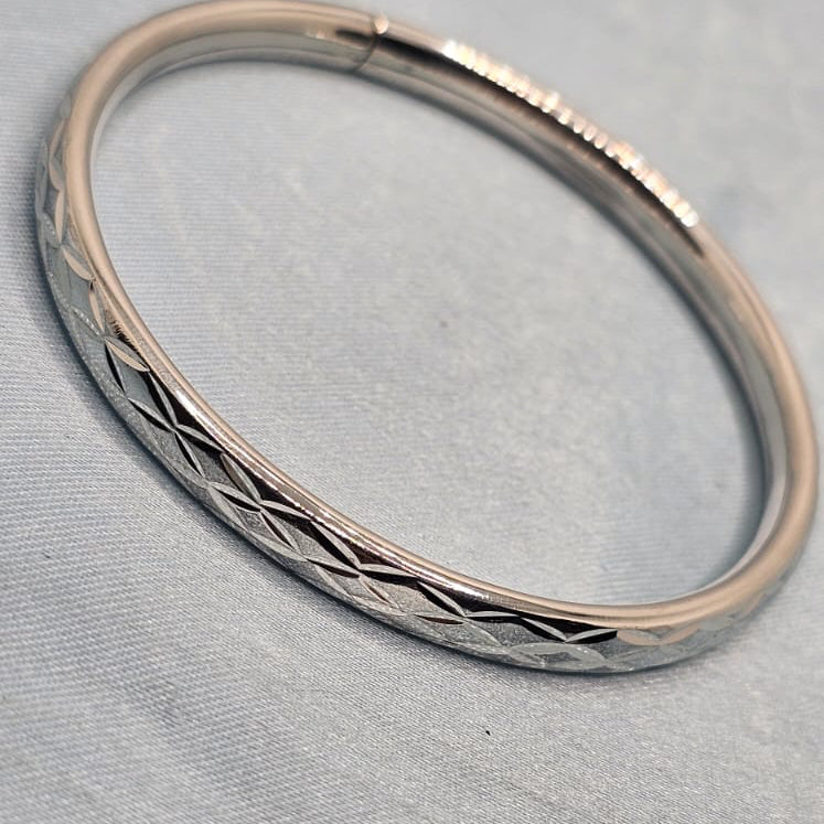 Delicately crafted in pure 92.5 sterling silver, this baby kada features a fine diamond-cut pattern that adds a subtle shine. Smooth, lightweight, and comfortable for tiny wrists—perfect for everyday wear or gifting.