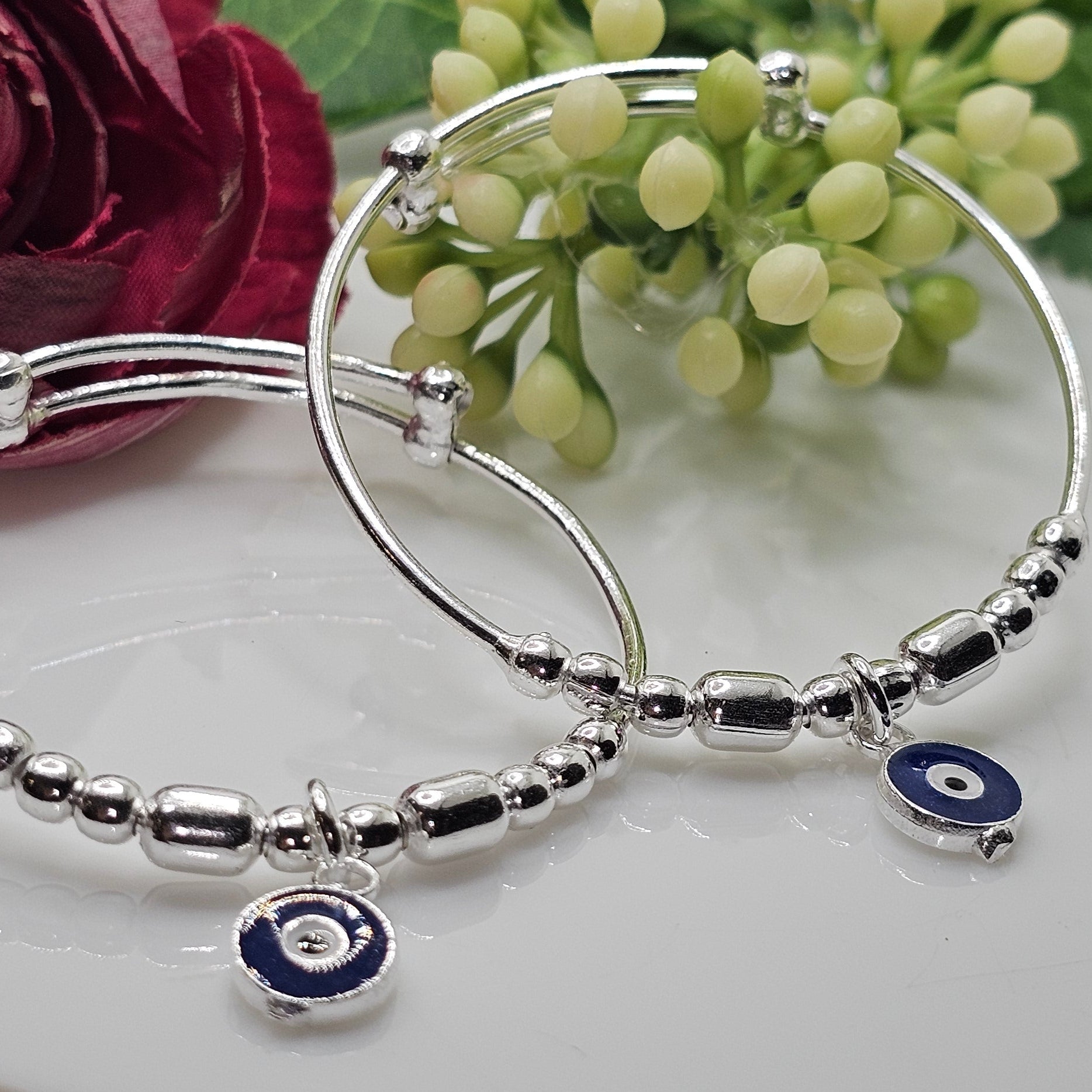 Beautifull pair of 92.5 sterling silver evil eye bangle for your little one.