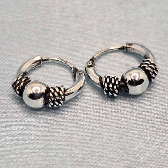 These timeless Bali-style hoop earrings are crafted in pure 92.5 sterling silver with elegant oxidised detailing and smooth silver bead accents. Inspired by traditional craftsmanship, they offer a perfect balance of simplicity and character. Ideal for daily wear or casual styling, these hoops complement both ethnic and western outfits effortlessly, making them a versatile addition to your silver jewellery collection.