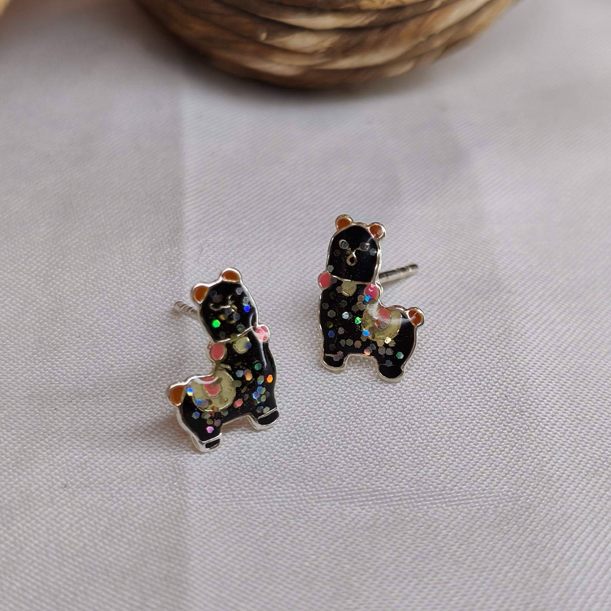 92.5 sterling silver black tops with blacl meenakari. Very tiny tops for tiny ears