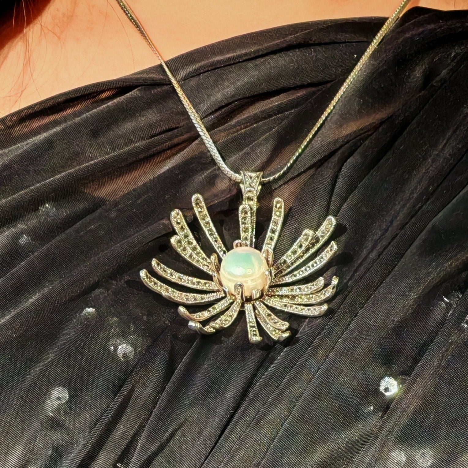 Elevate your style with this unique Flower Necklace, crafted in Pure Silver 92.5. Featuring a radiant floral pendant with intricate detailing and a luminous center stone, it adds a bold yet elegant charm to both ethnic and contemporary outfits.