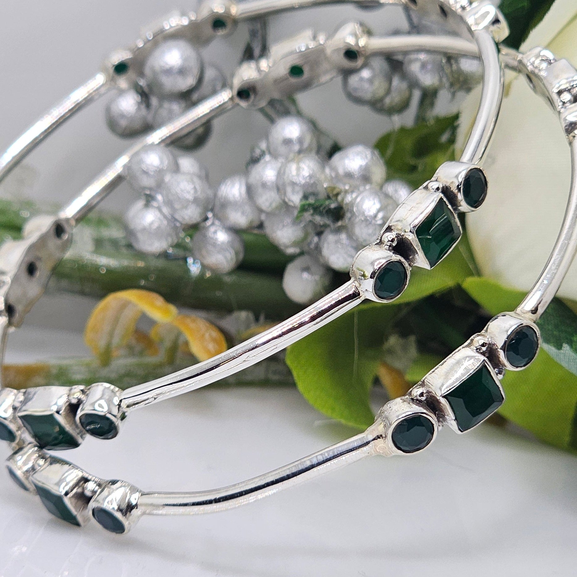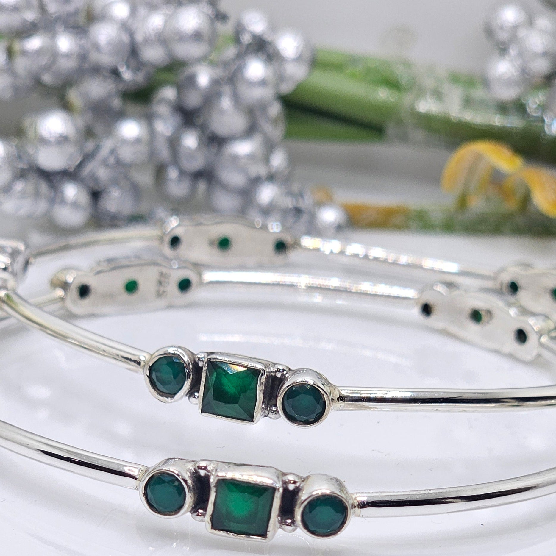 Add a pop of color with our elegant Green Square Bangle Set, crafted in Pure Silver 92.5. Accented with deep green stones, these bangles bring modern charm to traditional style.