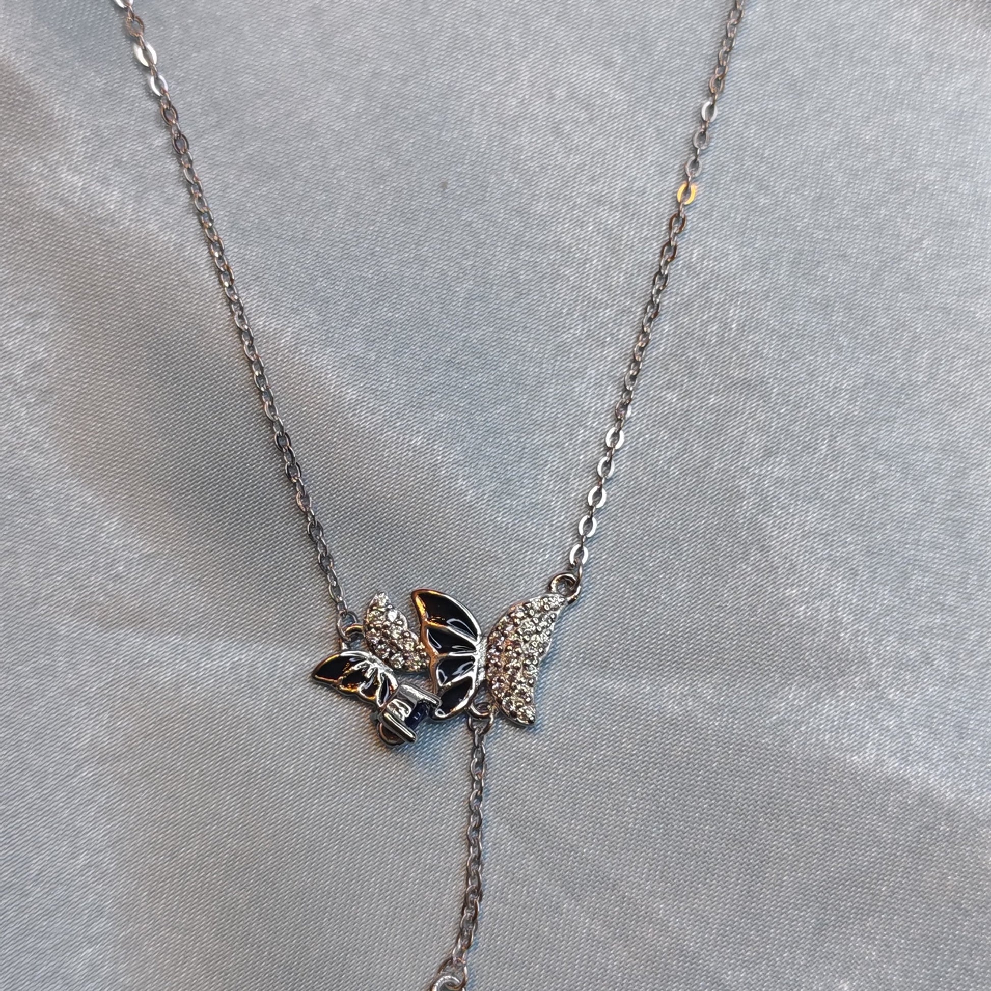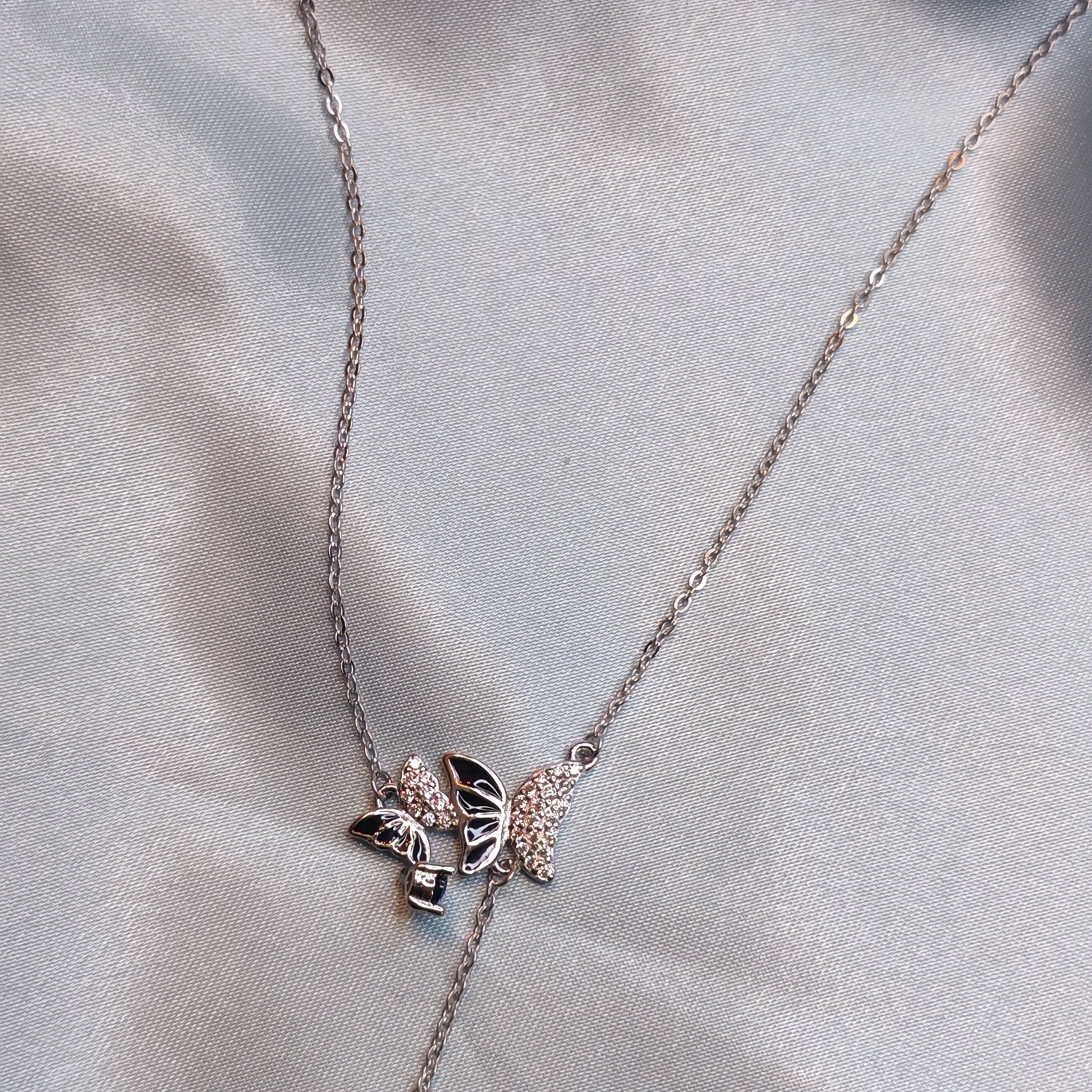 Delicate, dainty, and full of charm — this Pure Silver 92.5 necklace features a cute butterfly pendant encrusted with tiny shimmering stones. Perfect for layering or wearing solo for a subtle sparkle.