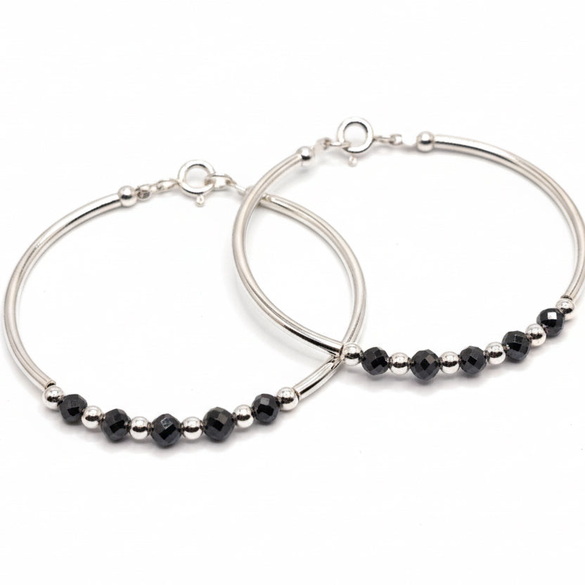 Specially designed for children, this Little Nazar Silver Bracelet features a delicate silver finish with tiny black bead accents for a sweet and protective touch. Lightweight and comfortable, it is gentle on young skin and ideal for everyday wear. A simple yet meaningful piece that adds charm while keeping the design minimal—perfect for gifting to little ones.