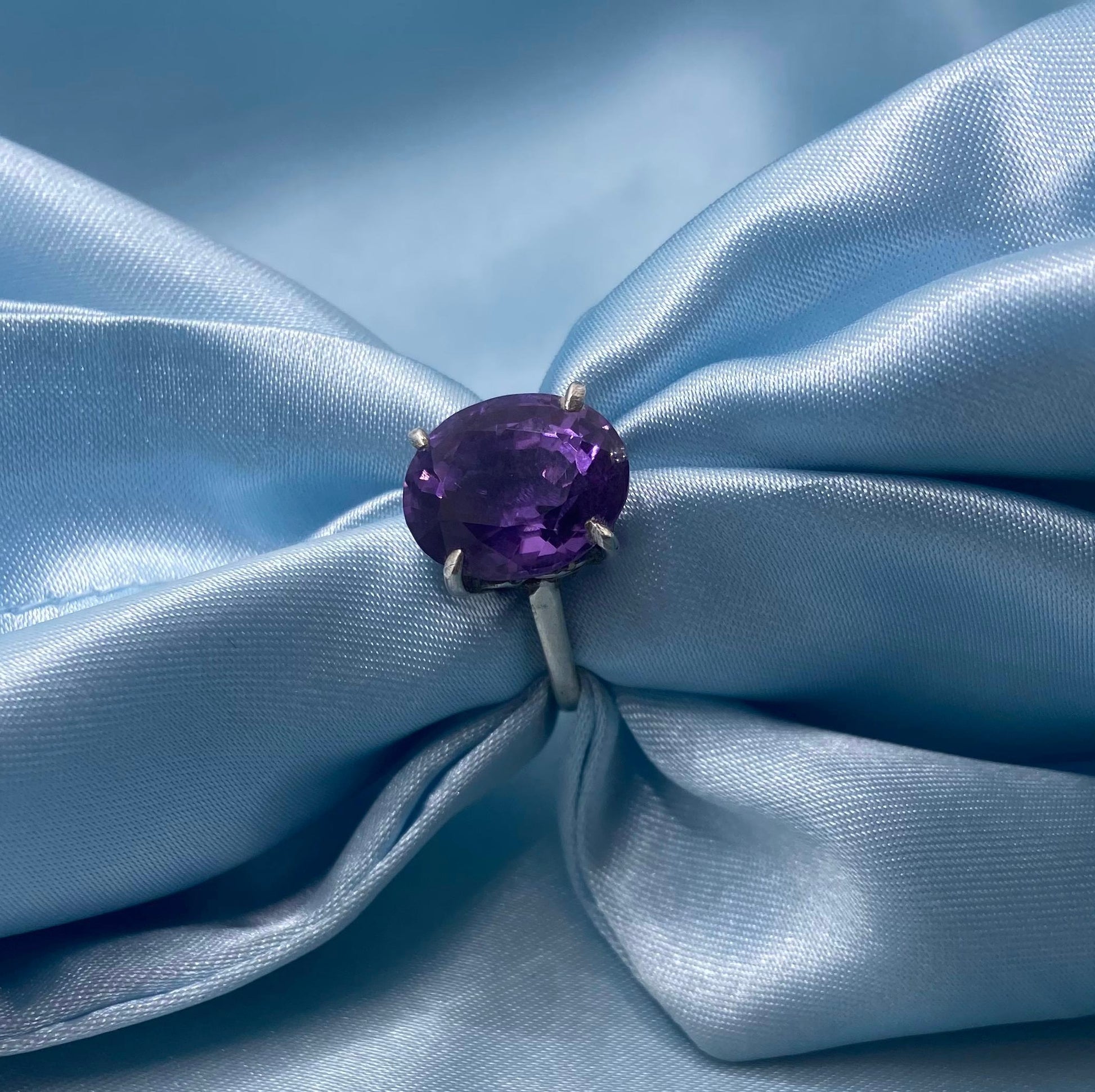 A captivating oval purple stone ring crafted in 92.5 sterling silver. The deep purple hue symbolizes elegance, creativity, and charm, making it the perfect accessory for both everyday wear and festive occasions.