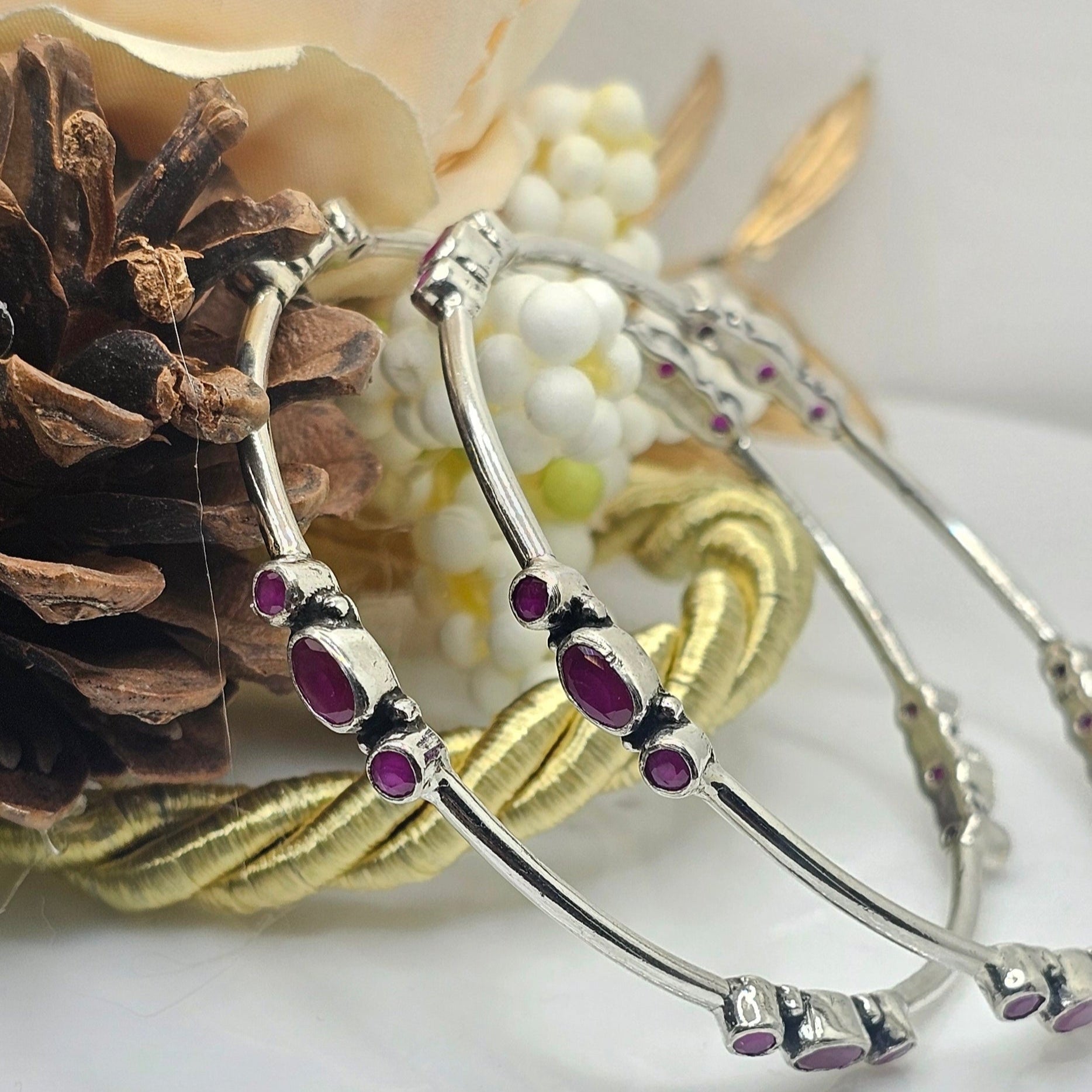 ✨ Elegant and timeless, the Ramya Bangle (Set of 2) is crafted in Pure Silver 92.5, adorned with delicate purple stone accents. Perfect for everyday wear or festive occasions, these bangles add a graceful charm to your wrist.