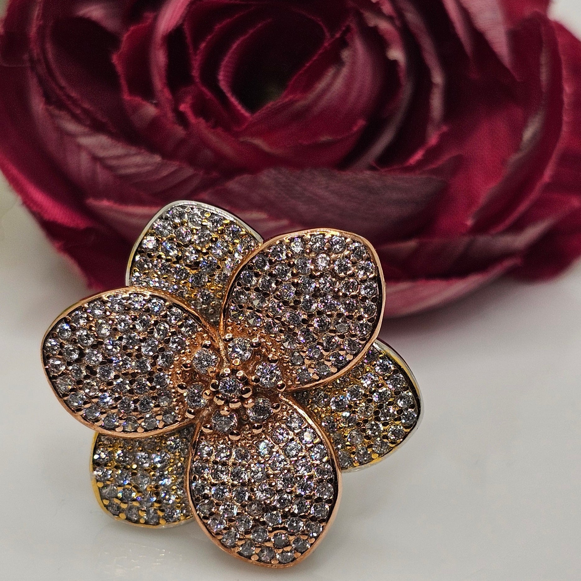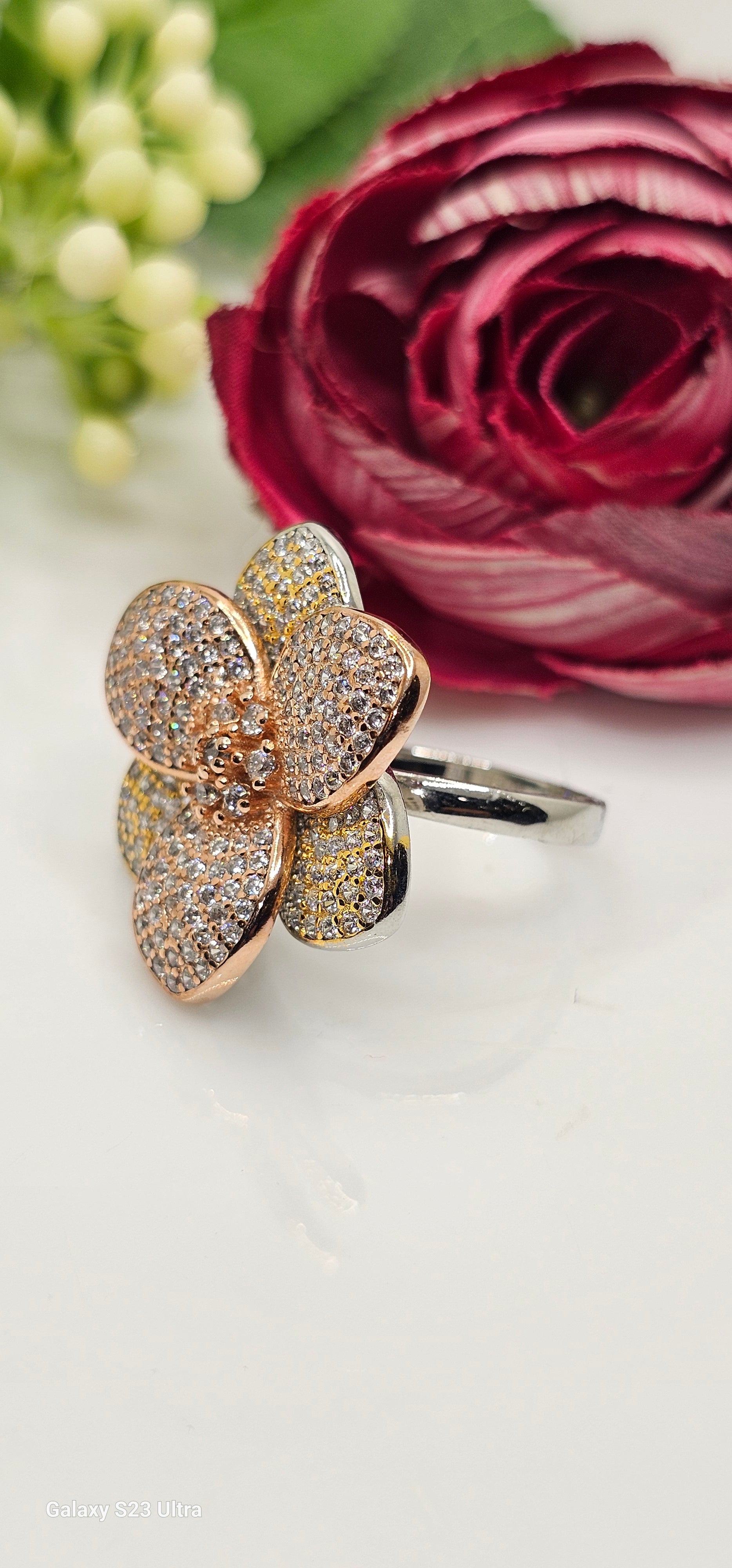 rose gold flower ring